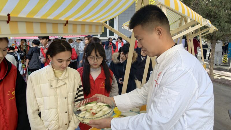 “學(xué)校從沒這么熱鬧過!原來豆腐能變成會(huì)開花的羹湯,皮藝上的花紋要經(jīng)過上千次敲打。”該院音樂教育專業(yè)大一新生麥迪娜木·吾拉依木在各個(gè)展臺(tái)間流連忘返,其表示雖然兩地相距遙遠(yuǎn),但通過這些精美的手工藝品,她仿佛觸摸到了淮南的文化脈搏。
