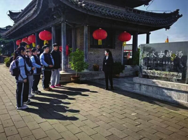 古城街巷中,學生們舉著手機拍攝磚墻上的“淝水古戰場”標識,或蹲在城門口比對“古城地圖”與實際街巷的方位——原本停留在課本中的“歷史地理”,此刻成了腳下可丈量的真實空間。