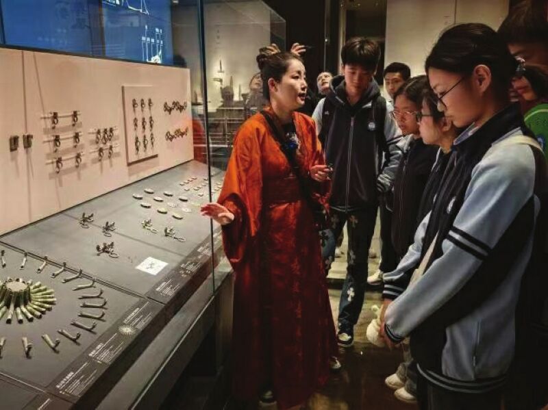 在安徽楚文化博物館,學生們被展柜中斑駁的青銅器深深吸引。“這是楚國時期的劍,劍身的紋路還能看清鑄造痕跡!”隨著講解員的介紹,有學生忍不住伸手輕觸展柜玻璃,仿佛想透過冰涼的屏障,觸摸千年前的鑄劍火光。另一側的壽縣古城墻下,學生們指尖撫過磚石上的青苔感嘆:“課本里說‘城郭堅厚,易守難攻’,親眼看到才懂這城墻背后藏著多少歷史故事。”