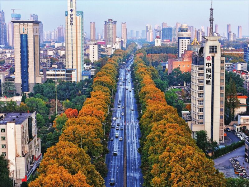 初冬的淮南尚未褪去深秋的斑斕底色,反倒多了幾分清冽中的溫柔。街頭的行道樹依舊枝葉繁茂,金黃、橙紅的葉片在微風中搖曳生姿,陽光透過枝葉灑下斑駁光影;舜耕山上層林盡染,漫山的彩葉與山間的亭臺相映成趣,勾勒出一幅詩意盎然的初冬畫卷,將深秋的余韻與初冬的清歡完美融合。