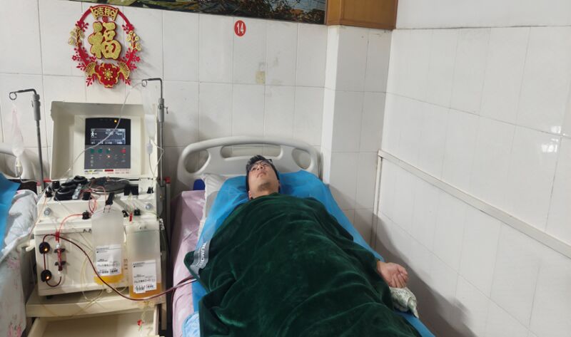 淮南聯合大學醫學院學生張東躍捐獻血小板救助患者(圖片由淮南市新時代志愿者聯合會提供)