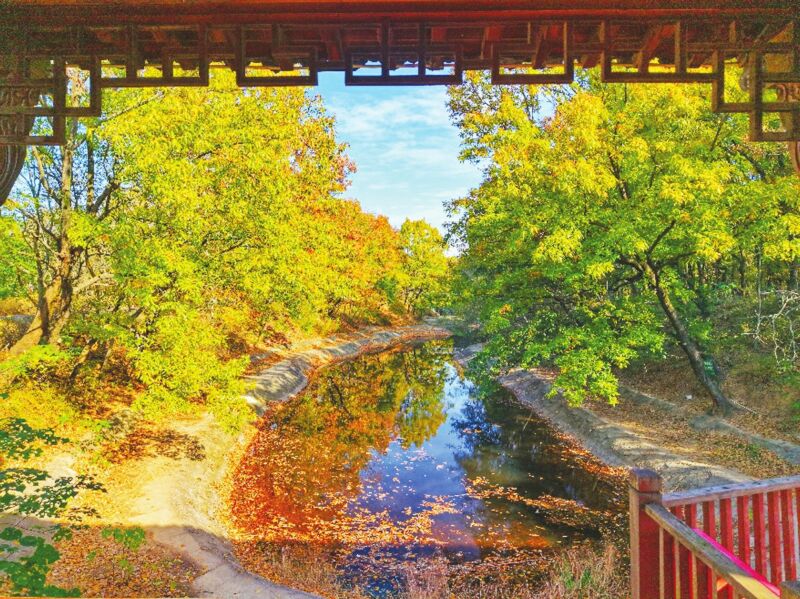 初冬時(shí)節(jié),位于舜耕山南麓的慈母溪迎來(lái)一年中的最美時(shí)刻。清晨的陽(yáng)光透過(guò)色彩斑斕的樹(shù)葉,讓靜謐的水面有了生機(jī),藍(lán)天白云映照其間,與溪面上金黃的落葉相映成趣,讓人忍不住放慢腳步,沉醉在慈母溪初冬獨(dú)有的清冽與詩(shī)意中。