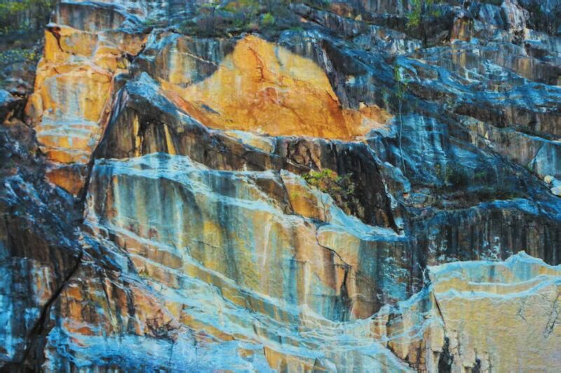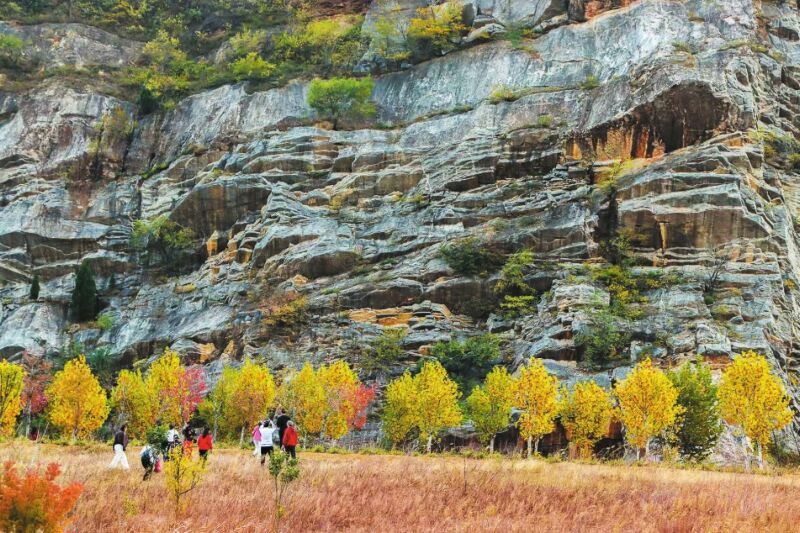 舜耕山脈長山段山北,斷壁陡峭如裁,多處斷面錯落有致,猶如一幅幅天然的立體壁畫。在這兒,每一道褶皺里都藏著地質變遷的余韻,每一處棱角都裹著草木生長的清息。游人尋跡而來,或駐足仰觀崖壁的肌理,或俯身輕觸石面的涼潤,當山風裹著落葉漫過肩頭,便覺這天地造化的意趣,那么的妙不可言。