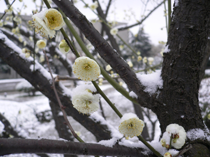 柳樹露出了嫩芽,玉蘭綻開了花朵,梅花吐出了幽香,迎春花也早早開放,報告著春天的來臨。3月6日,一場不期而至的春雪降臨能源城,把這個早春裝扮得別有一番意味。