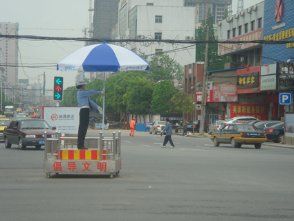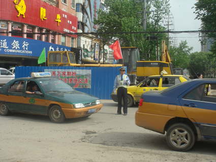 圖一、二:人民北路和香港街交岔口正在施工,交警正在現(xiàn)場執(zhí)勤。