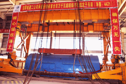 安徽首臺(tái)百萬(wàn)機(jī)組的發(fā)電機(jī)定子成功就位