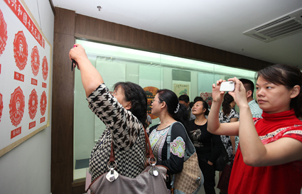 9月15日,淮南人民飽享“盛宴”。第十七屆中國豆腐文化節(jié)和第十屆中國淮南八公山旅游節(jié)各項活動精彩紛呈,吸引了眾多群眾的眼球。淮南沉浸在一片歡樂祥和的氛圍中。圖一:八公山旅游節(jié)上,精彩的民間文藝演出彰顯出濃郁的地方特色。圖二:兩岸名家剪紙、攝影藝術展引人入勝。