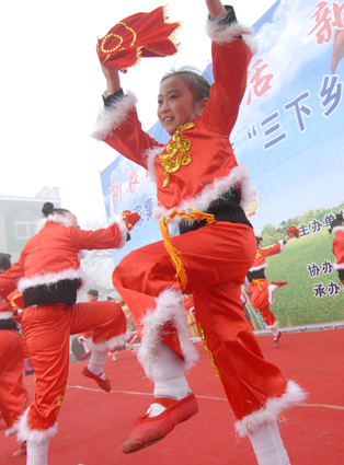 1月22日,謝家集區在李郢孜鎮賴山村舉行主題為“新農村、新生活、新風采”三下鄉活動,送文化、送科技、送衛生,受到當地群眾歡迎。圖一為農業科技書籍免費發放。圖二為義診服務。圖三為區文化館小朋友開心舞蹈。