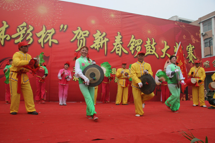 2月14日,鳳臺縣“體彩杯”賀新春鑼鼓大獎賽在城區(qū)文化廣場火爆開場,來自該縣開發(fā)區(qū)和各鄉(xiāng)鎮(zhèn)以及周邊市縣的19支鑼鼓隊300多名選手參加比賽,吸引了數(shù)以萬計的群眾前來觀看。圖為參賽選手在鑼鼓大賽上激情表演。