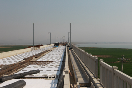圖一:已建成的窯河特大橋已初見雄姿。 圖二:中國鐵建十九局的建設(shè)者正精心施工。