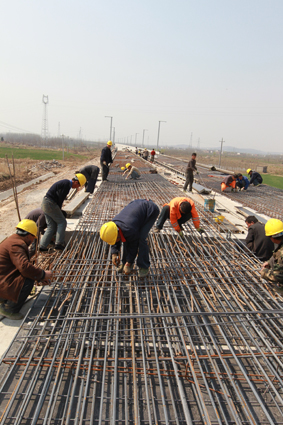 4月12日,京福高鐵合淮蚌客運專線淮南段工地一片火熱。今后淮南上行至北京,下行至福州只需3個小時,同時合肥、淮南、蚌埠間的城際鐵路形成一條快速通道。將大大加快我市實施合淮同城化戰(zhàn)略,全面帶動百里能源城的經(jīng)濟發(fā)展。