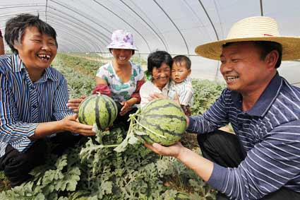 淮南市永泰農業生態園有限公司今年3月在孤堆鄉孤堆村流轉土地1100畝,用于發展市郊農業生態園,計劃五年時間擴大4000畝,形成千畝果園、千畝菜園、千畝水產、千畝花卉苗木的農業基地。目前,鋼架大棚200畝早春西瓜將上市,預計畝產800斤左右,總產值可達150萬元。