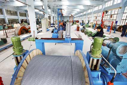 日前,中國電科八所光纜車間內工人們在精心工作中。中國電科八所1970年建所以來,共完成科研試制項目300多項,分別獲國家、部省級科技成果獎100多項。近年來,該所努力開拓軍民品國內外市場,2010年實現總收入1.57億元,系列產品光纜制造專用設備占國內市場60%以上,成套出口至俄羅斯、韓國等。