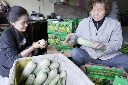 圖二:田集蔬菜瓜果協會的員工正在為訂購客商分揀包裝酥瓜