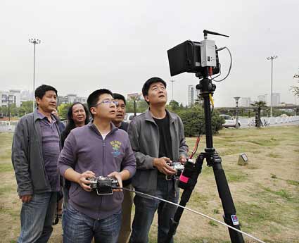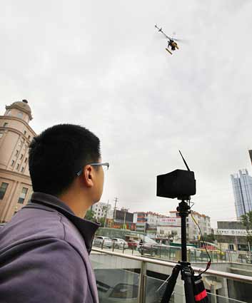 5月25日,在我市鬧市區,一架無人駕駛小飛機正在地面指揮人員的控制下起飛,為我市城市宣傳片進行航拍。據了解,此次航拍主要由市委宣傳部、市委外宣辦牽頭,淮南電視臺和外地一家影視公司具體拍攝。主要拍攝我市城市建設、農業生產、山水風光、工礦企業等方面新成就的圖片和影像,全方位地展示我市的發展成果、自然景觀、人文風貌。