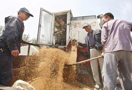 6月1日,大通區(qū)九龍崗鎮(zhèn)魏嘴村農(nóng)民正在搶收小麥。在當(dāng)日的麥?zhǔn)宅F(xiàn)場(chǎng),處處是金黃的麥浪,一臺(tái)臺(tái)發(fā)出隆隆作業(yè)聲的收割機(jī)在麥田里忙碌著,豐收的喜悅掛在農(nóng)民臉上。據(jù)了解,全市今年夏糧面積155萬(wàn)畝,預(yù)計(jì)投入夏收機(jī)械達(dá)5500臺(tái)。截至5月31日,全市已收獲小麥29.4萬(wàn)畝,占應(yīng)收面積19%。
