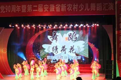 近日,在第二屆安徽省新農村少兒舞蹈匯演中,鳳臺縣新集鎮的花鼓燈少兒舞蹈《繡荷花》融入花鼓燈舞蹈經典動作,以優美的舞姿表現出少年兒童的天真、活潑、可愛,奪得一等獎。