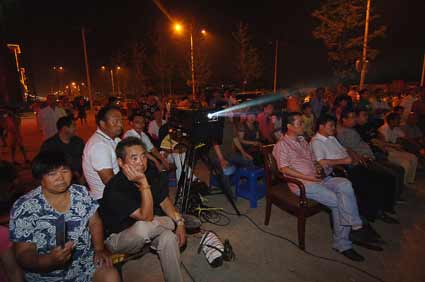7月6日晚上7時,隨著電影《南京·南京》在毛集實驗區毛集鎮中心村的放映,拉開了送紅色電影下鄉的首映式。此次活動是毛集實驗區工委與淮南文商房地產開發公司組織的,為豐富慶祝建黨90周年活動內容,他們精心準備《南京·南京》、《地道戰》、《唐山大地震》、《南征北戰》等10部紅色經典電影將分別送到15個村輪流放映30場次。圖為村民們踴躍觀看紅色電影《南京·南京》時的場景。