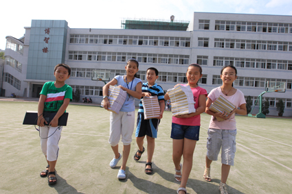 9月1日是我市中小學新學年開學日,同學們懷著極大的學習熱情來迎接新學期到來。圖為小學生們高興地領到新書。