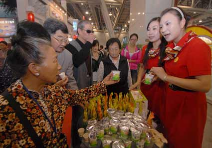 9月23日,主題為“綠色·開放·創(chuàng)新·崛起”的2011中國安徽(合肥)農(nóng)業(yè)產(chǎn)業(yè)化交易會在安徽國際會展中心隆重開幕。淮南市共有26家企業(yè)參展,以豆制品、糧油食品、水果等120個農(nóng)產(chǎn)品亮相農(nóng)交會。圖為食用方便的劉香塑杯豆腐花新產(chǎn)品受到合肥市民的好評。
