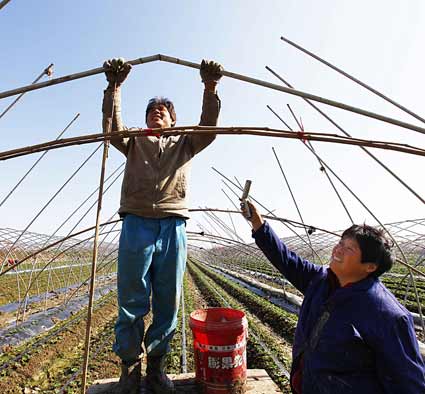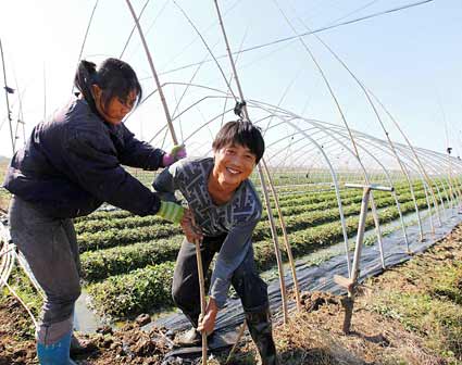 10月25日,大通區孔店鄉草莓種植戶正忙碌著為草莓搭建大棚,提前做好防寒工作,確保草莓的生長,為草莓豐收打好基礎。目前,大通區孔店鄉草莓種植面積已達5000畝,預計每畝收入萬元左右。