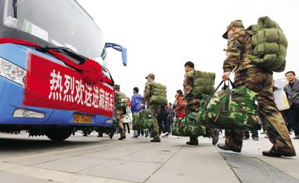 圖一:進(jìn)藏新兵按照要求統(tǒng)一集結(jié)準(zhǔn)備啟程。