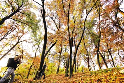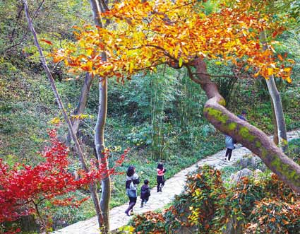 11月21日,雖已立冬,八公山森林公園仍處處顯示濃濃的秋意。夕陽(yáng)給藍(lán)天、遠(yuǎn)山、房屋及遠(yuǎn)近的樹木都涂抹上一層金色,極具詩(shī)情畫意。美麗的景色吸引眾多市民、游客前來(lái)賞景、游玩、拍照,更為這名山異景增加一道靚麗的色彩。