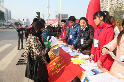 “阿姨,您好!請拿好法制宣傳資料!”12月2日上午,市環保局門前活躍著一群頭戴“小紅帽”的普法志愿者。為迎接“12·4”全國法制宣傳日,當天,市直部門和田家庵區開展了大型法制宣傳活動。通過設立法律服務和法律援助咨詢臺,為市民解疑釋惑;值得一提的是,頭戴“小紅帽”法律志愿者也參與其中,營造出濃厚的法制宣傳氛圍。圖為:法律志愿者在散發宣傳資料。