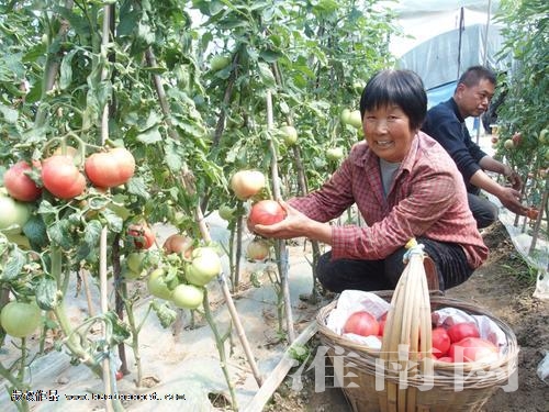 據(jù)介紹,陶圩村是傳統(tǒng)的蔬菜種植村,西紅柿更是當(dāng)?shù)靥厣S捎谔折状宓靥帒?yīng)臺孜,因此,這里的西紅柿便注冊為“應(yīng)臺孜”牌,規(guī)模達(dá)到上百畝。這里的西紅柿沙瓤,皮薄肉厚,酸甜可口,美味多汁,生食、燒炒均可,是人們“記憶中的味道”,深受市場歡迎。