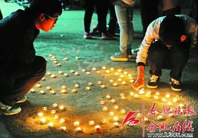 3月29日,安徽理工大學大學生綠色協會學生通過蠟燭擺放“60+”圖案,倡導人們關愛地球,低碳生活。陳彬 攝